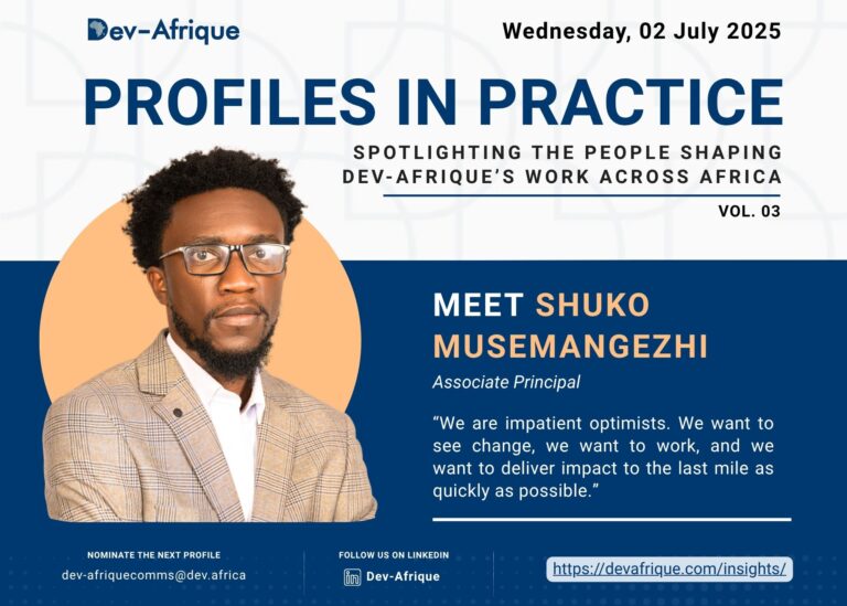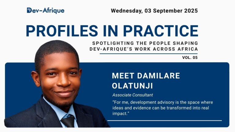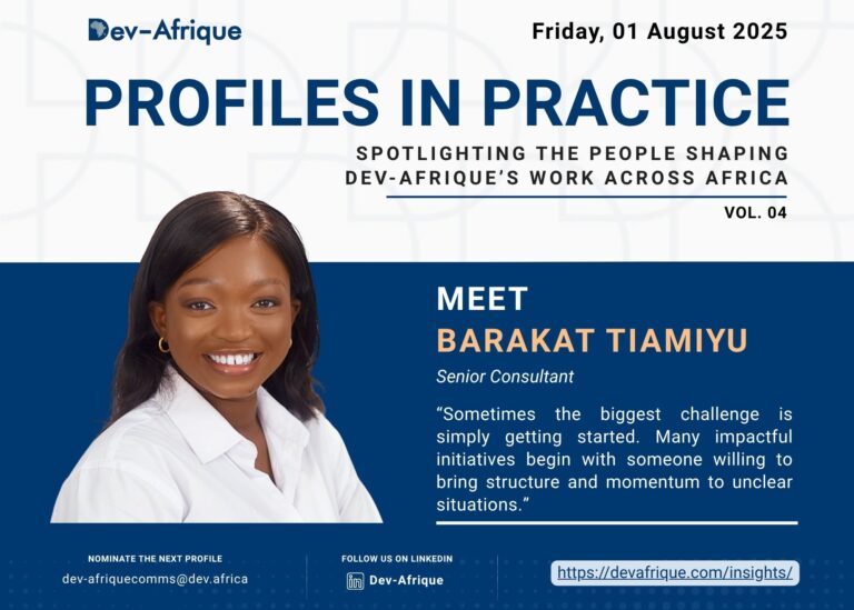 Spotlighting the people shaping Dev-Afrique’s work across Africa In this edition of Profiles in Practice, we feature Oluwadamilare Olatunji, Associate Consultant at Dev-Afrique. From his early interest in governance to his hands-on contributions in research and project delivery, Damilare shares…